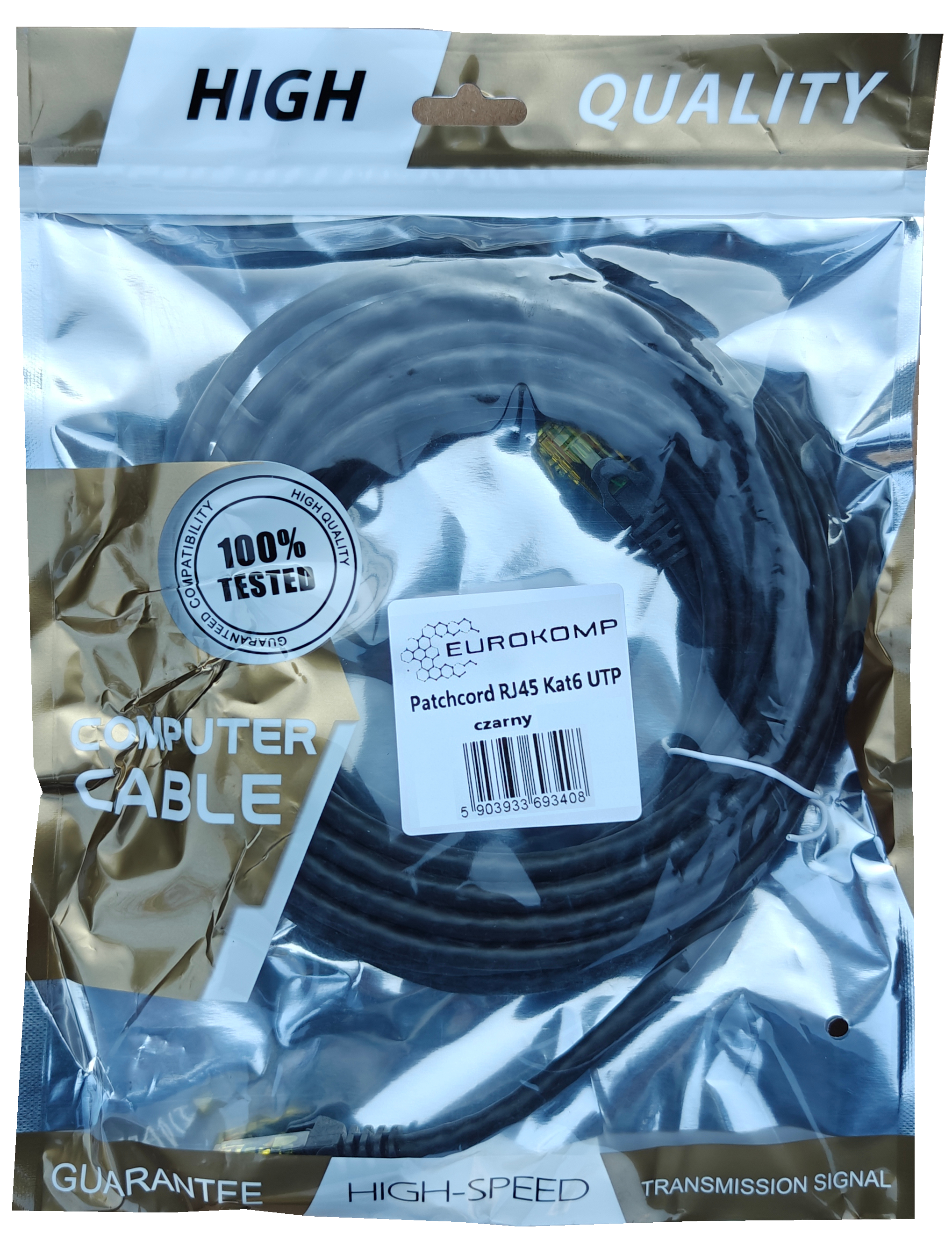 Patchcord RJ45 Kat6 UTP czarny 10m.
