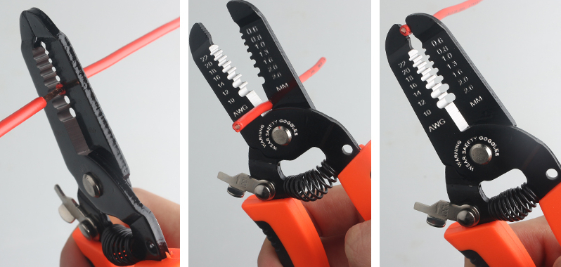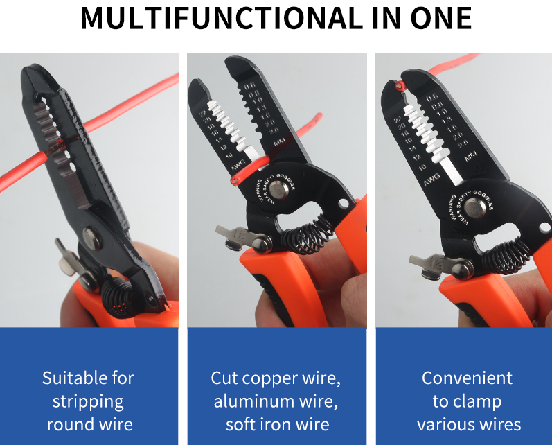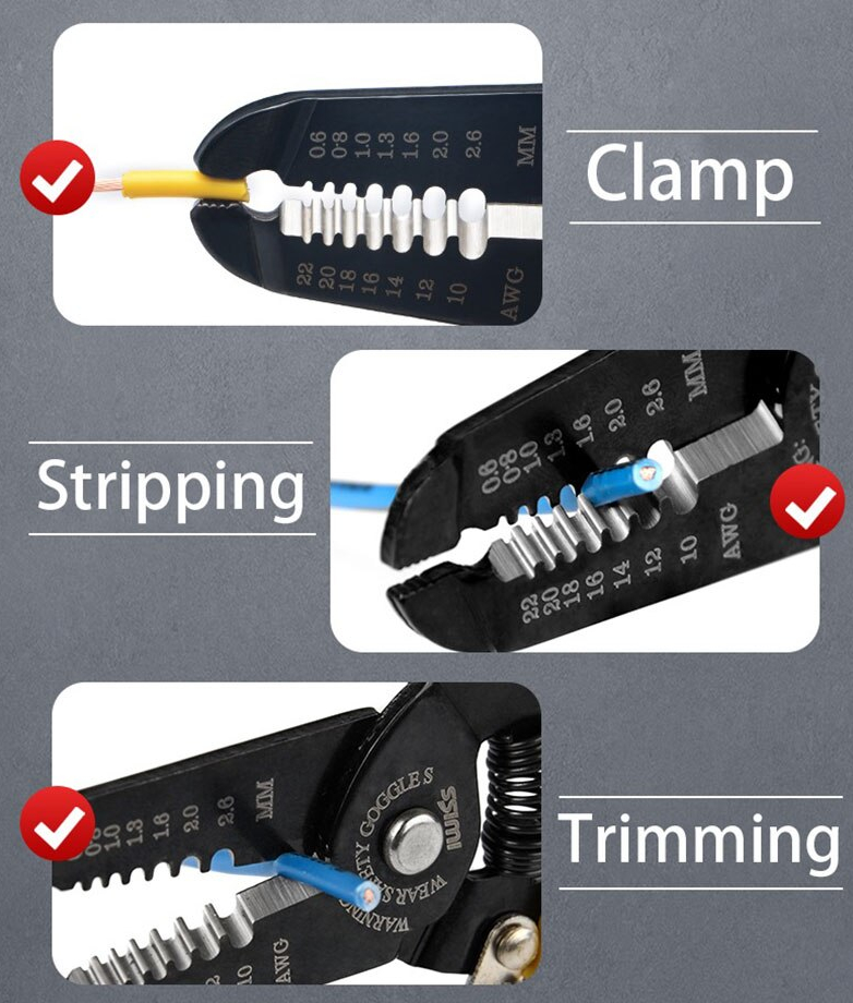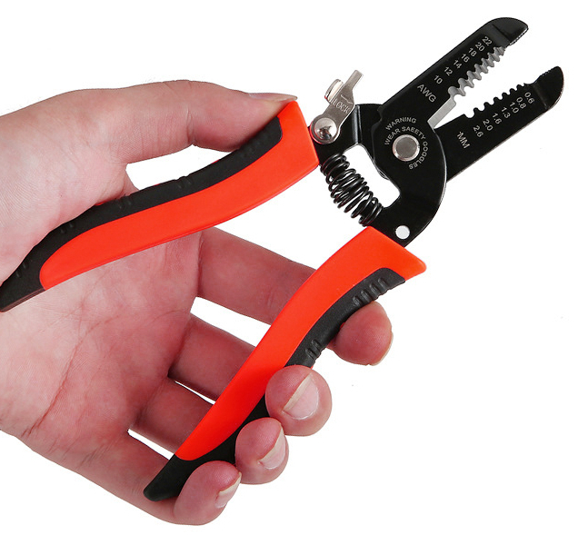 Wielofunkcyjne narzędzie do ściągania izolacji, szczypce oraz cęgi do cięcia przewodów.
