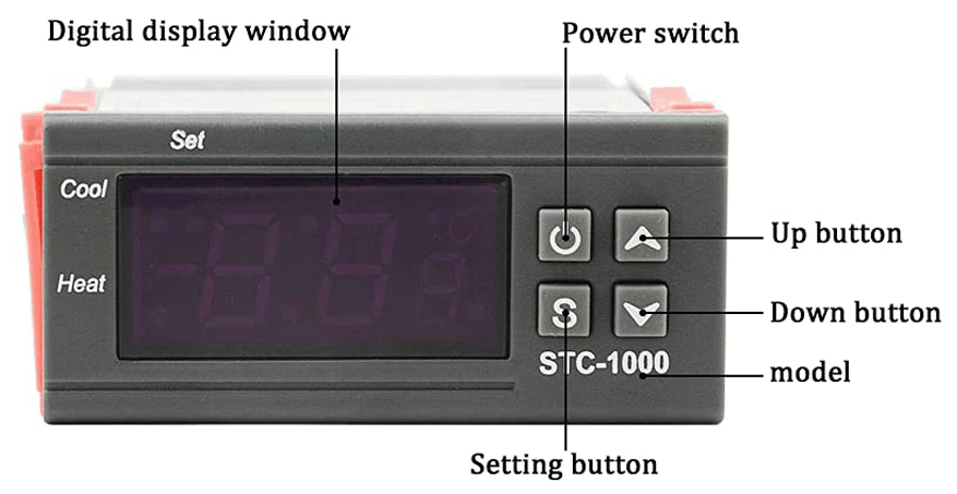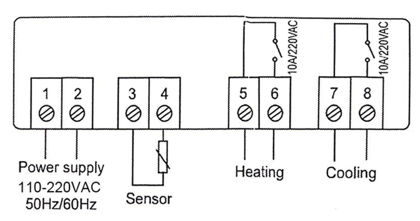 Obciążalność styków przekaźnika: Chłodzenie (10A/250VAC), Grzanie(10A/250VAC)