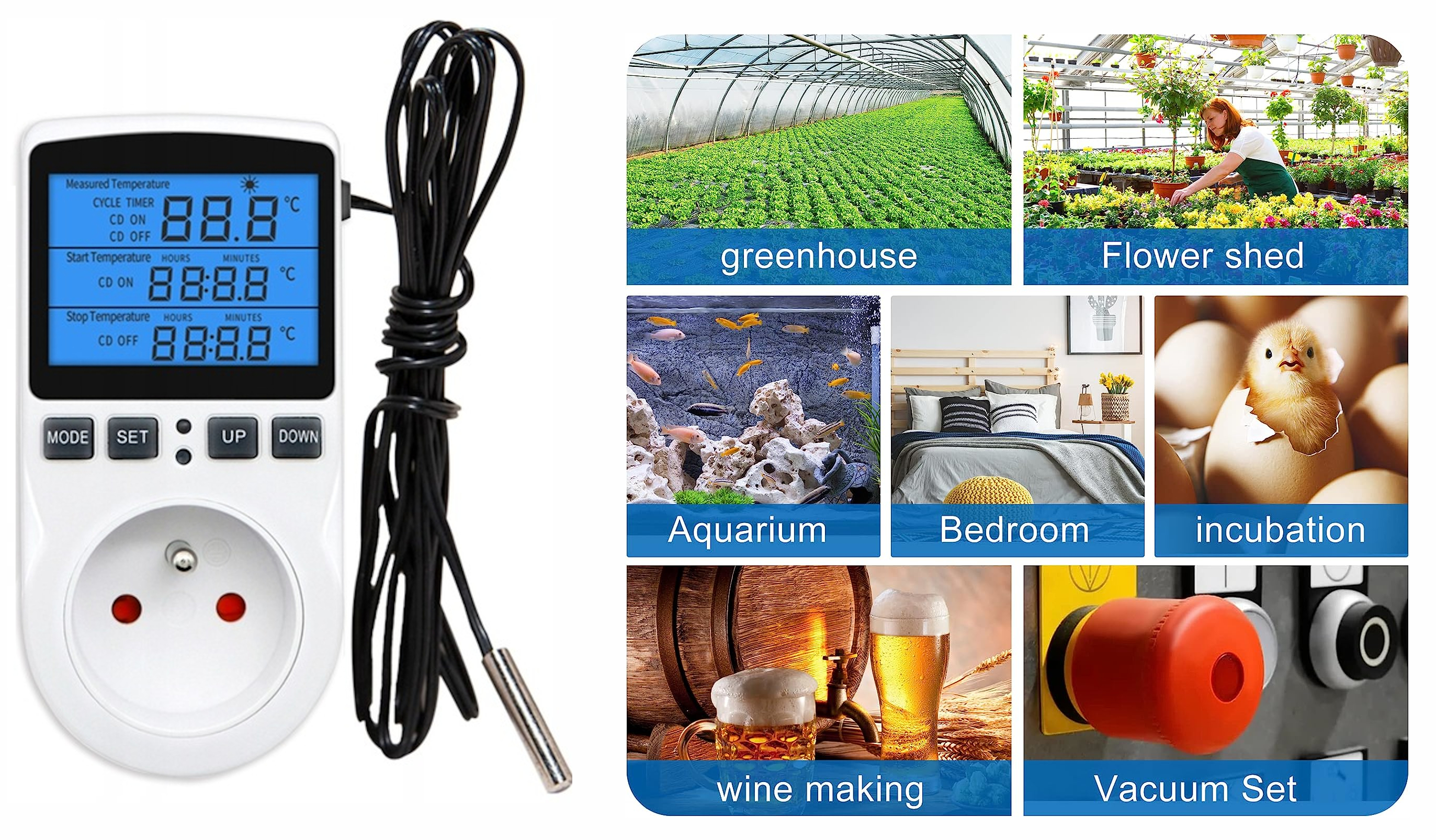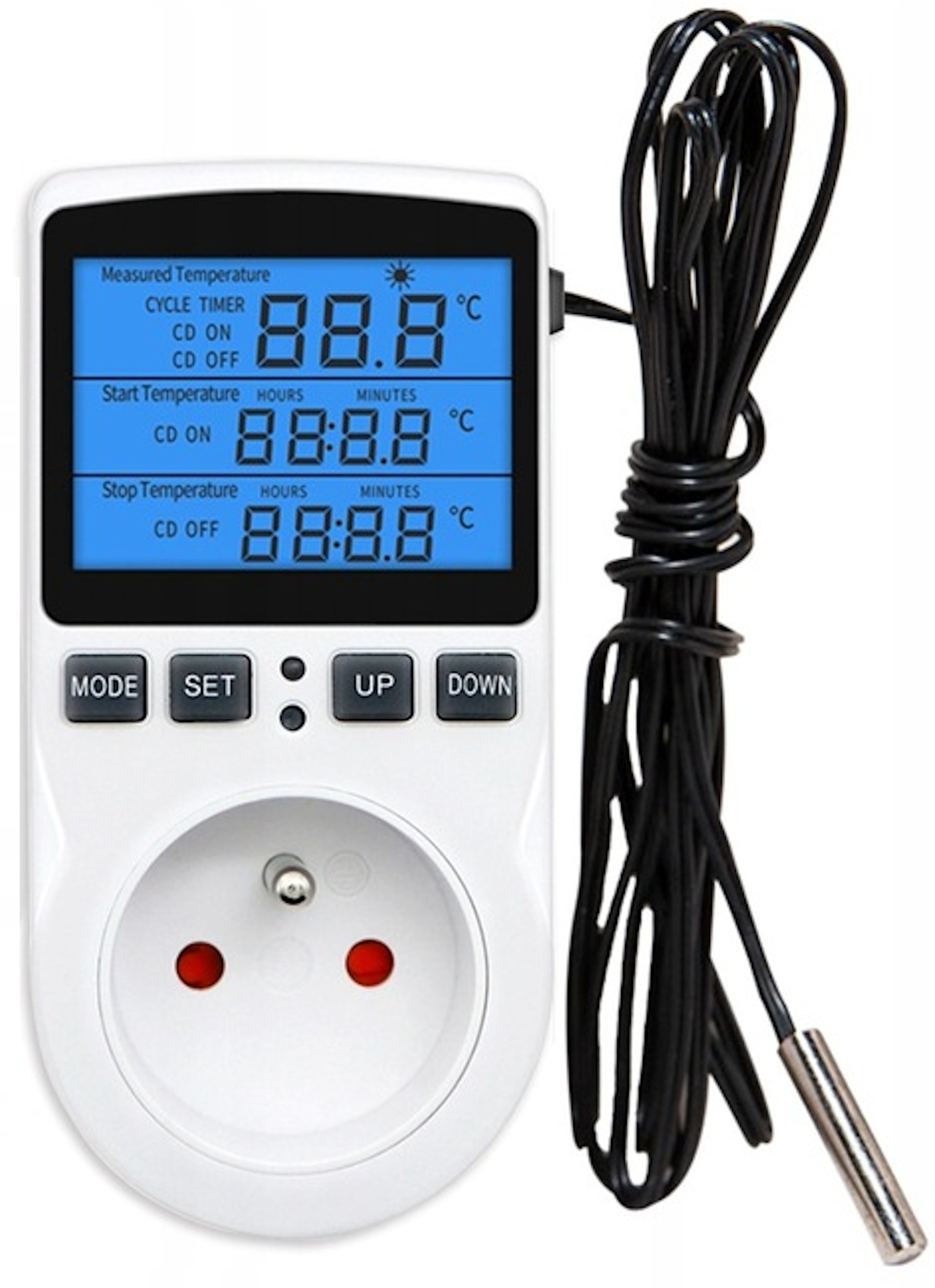⭐ Wielofunkcyjny termostat - cyfrowy regulator temperatury gniazdko z przełącznik czasowy, sonda czujnika ogrzewanie chłodzenie 16A 230V 110V