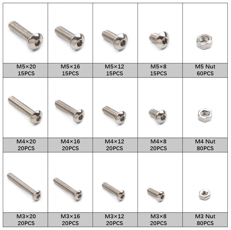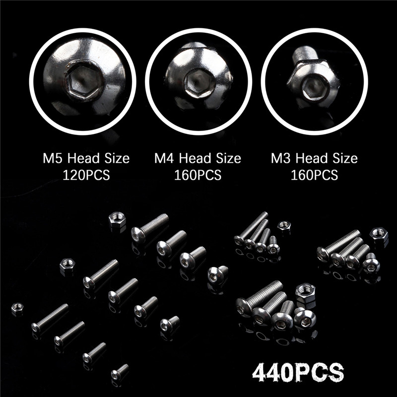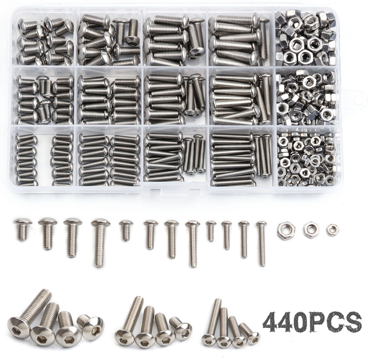 Zestaw 440 śrub Hex (imbus) ze stali nierdzewnej