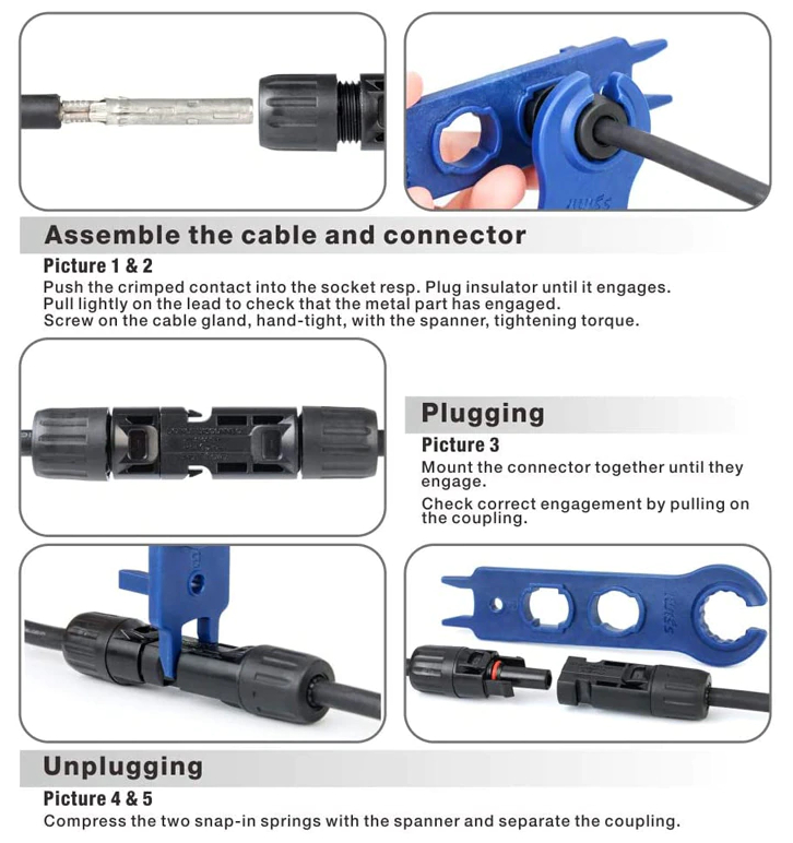 Złącza typu MC4 (męskie i żeńskie) przeznaczone do stosowania na przewodach solarnych.Umożliwiają profesjonalne łączenie paneli fotowoltaicznych, zapewniając stabilne i bezpieczne połączenie.